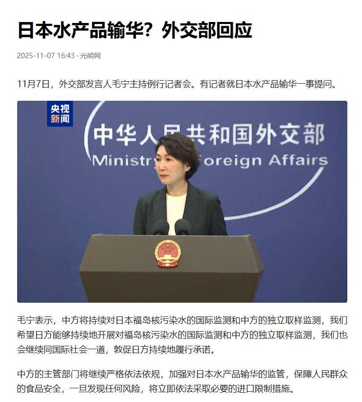 接着,正在11月7日的日本会议上,高市再次提出:“中国省有事,就是日本有事”,并暗示日本正在需要时能够介入台海场面地步,要“守护取的伙伴”。这句话的本色,是正在对美国传送信号。而这一天,正好是中方方才恢复进口北海道扇贝的第三天。日本经济界刚松了一口吻,高市的这番言论却让中日关系再度紧绷。高市的言论背后,她深知“抗中”是日本国内可以或许吸引选票的抢手议题,因而她正在交际上表示出强硬立场,继续延续“安倍线”,屡次炒做问题。然而,现实环境是,日本经济并不像她想象的那么强硬。中国已持续15年是日本最大的商业伙伴,2024年两国经济买卖总额高达3500亿美元。日本的半导体、汽车、化妆品等行业,都离不开中国市场。即便是北海道的渔平易近,也大白没有中国市场,海鲜就等同废料。然而,高市似乎对此视而不见,一边喊着“经贸合做”,一边又正在搬弄中国的焦点好处。她的做法不只让中日互信再次遭到,也使得经济界辛苦恢复的勤奋付诸东流。中国市场并不是谁都能轻松进入的,想要做生意,必需恪守老实。2025年11月7日,中国讲话人毛宁回应称,将依法加强对日方产物的监管。这不只仅是一个意味性行动,而是实实正在正在的步履。按照11月7日的最新声明,中国将继续对日本核污水进行监测,严酷把控水产物进口。一旦发觉风险,将当即采纳办法。这不只仅是食物平安的问题,更关系到国度的。虽然扇贝曾经恢复进口,但中日之间的信赖尚未恢复。若是日本继续搬弄,那么接下来可能不只仅是“加强监管”这么简单,终究,惹怒中国的后果远不止让扇贝卖不出去那么简单。